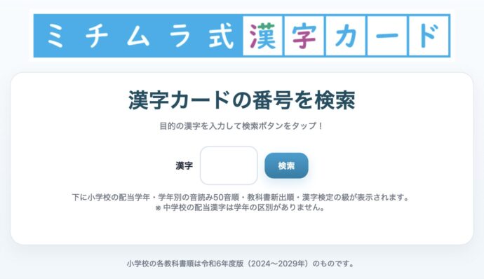漢字カードの番号検索WEBアプリが新登場!